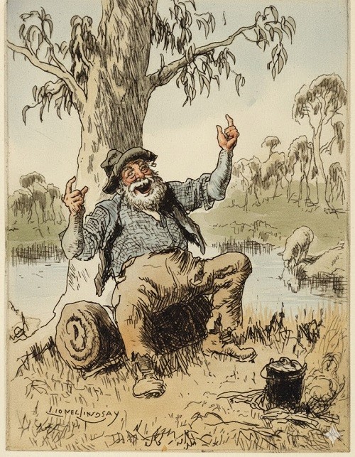 With this information under our belt, we can now look at the rest of the verses that Paterson put together to complete his waltzing Matilda story. And what we find is not at all a straight retelling of the story that he had heard from Bob Macpherson. The main ingredients are there – the police, the jumbuck, the drowned swagman and the ghost – but the story has changed completely. Not only does Paterson have the swagman caught and interrogated by his captors but he then has the swagman jump into the billabong and drown himself. He keeps Bob Macpherson’s ghost, but it now sings through the billabong, with a very much less promising, ‘Who’ll come a-waltzing Matilda with me’.