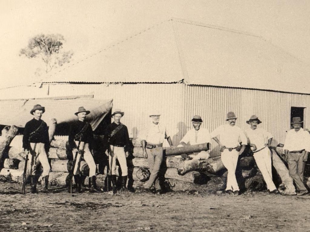 Bob Macpherson, 3rd from right, posing with the three policemen he rode out with in September 1894 to the striking shearer’s camp after they burnt down his woolshed.
