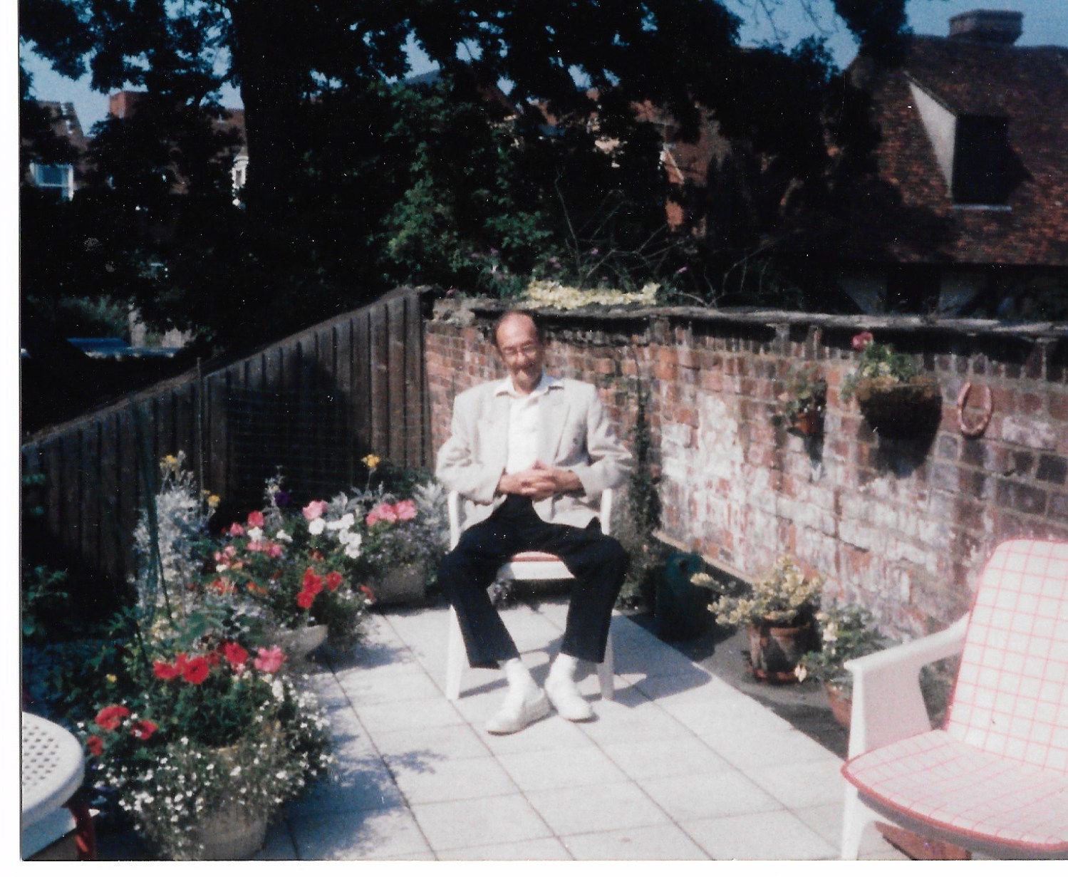 Jack, probably in his back yard at Bromley. The upturned horseshoe on the brick wall is for luck.