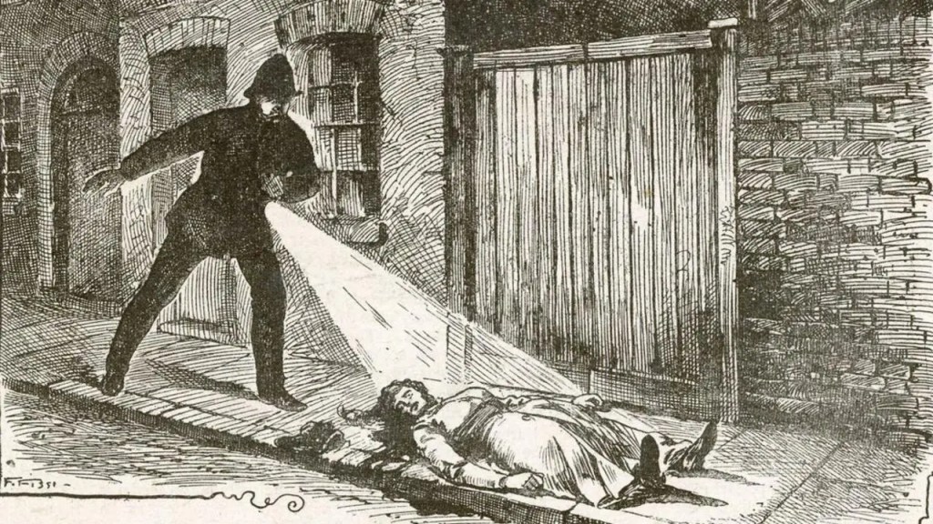 Perhaps twenty minutes before 4am on 31 August 1888, a passing workman discovered the still warm body of ‘Polly’ Nichols in Buck’s Row, not far from Bethnal Green. It was a dreadful sight. Her head was almost severed by a savage slash through the throat and her abdomen was deeply gashed with a very sharp instrument. Her dress was pulled up to her waist, possibly related to her work as a prostitute. The attending surgeon noted a wine glass and a lot of blood in the gutter.