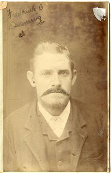Frederick Deeming with a moustache drawn on the image in ink, Victoria Police Museum